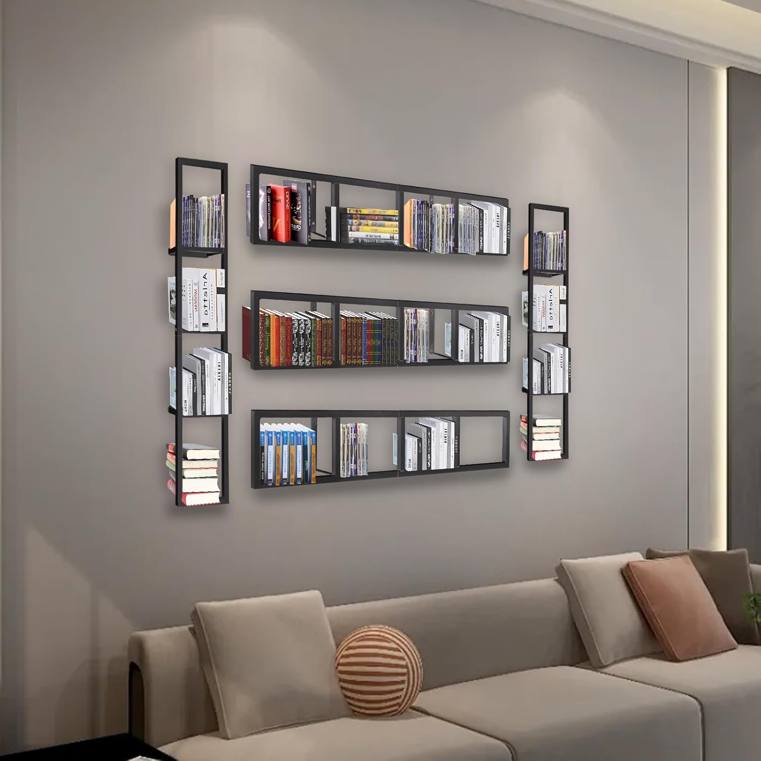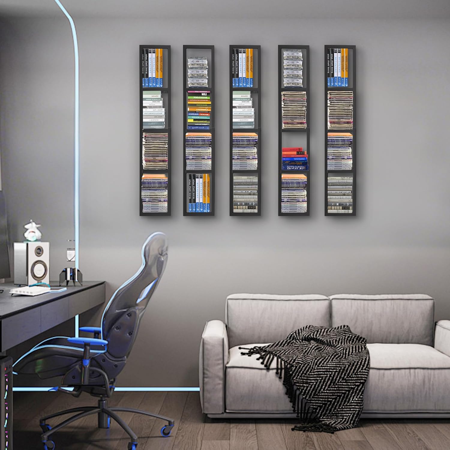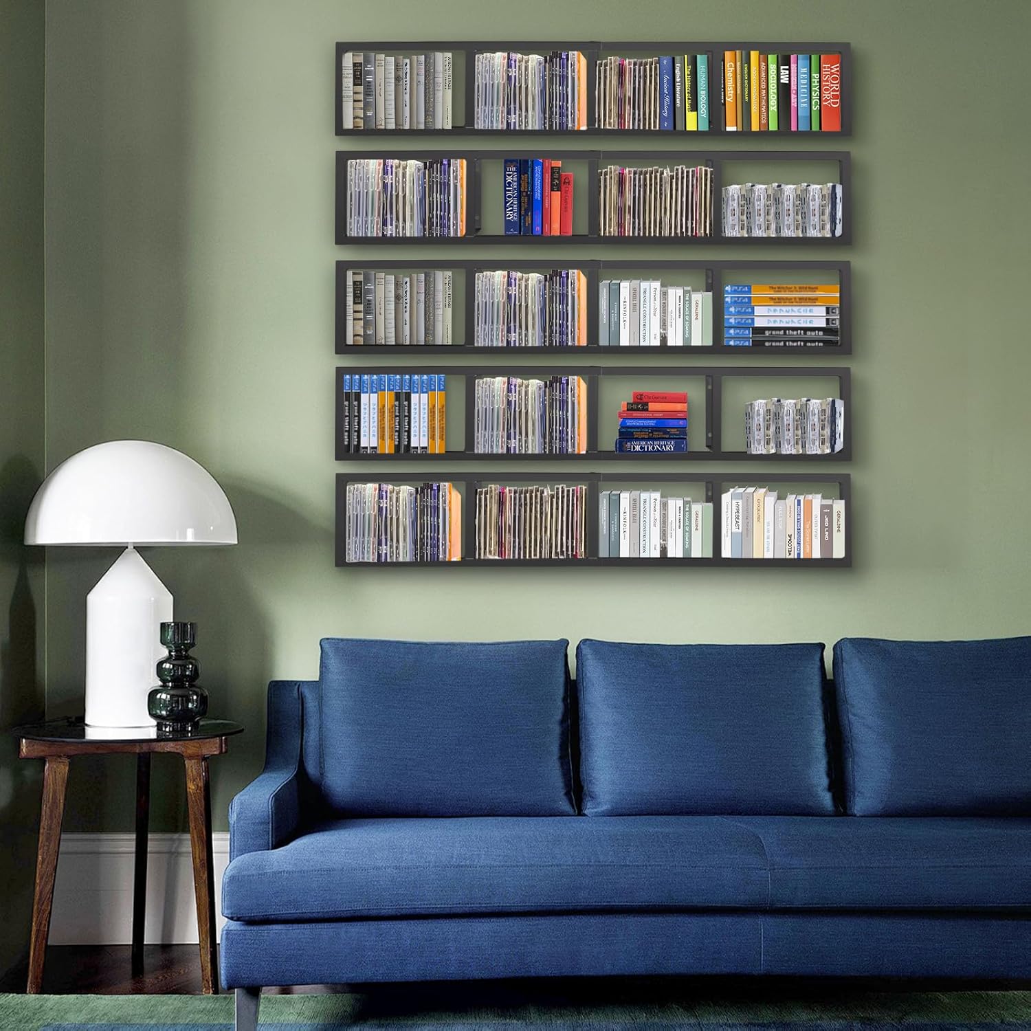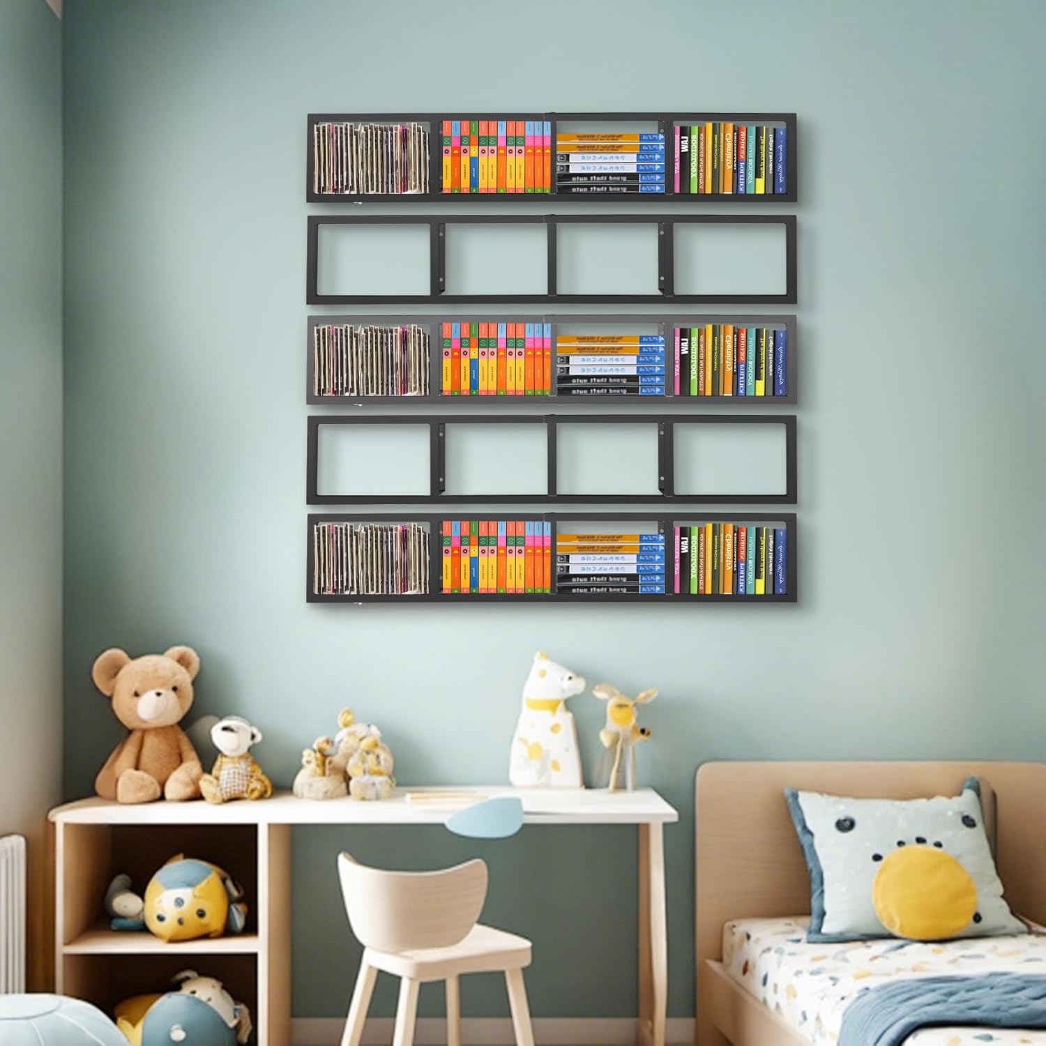 3 Pcs 34Inch CD DVD Storage Shelf Wall Mount Media Cube Storage Rack, Audio Video Game Book Organizer Shelf, Black Floating Shelves,Wall-Mounted Bookshelf for Home Bedroom Living Room Office