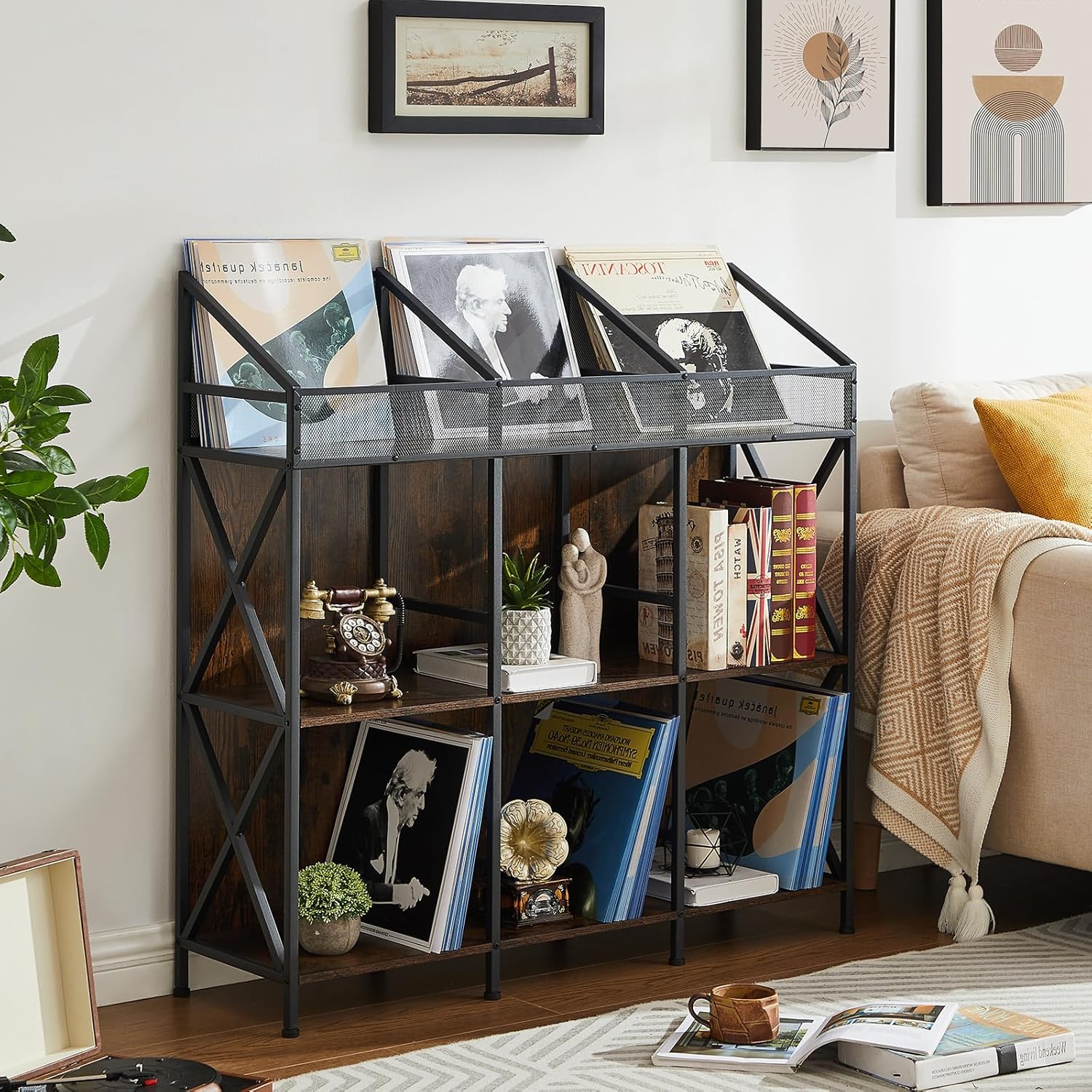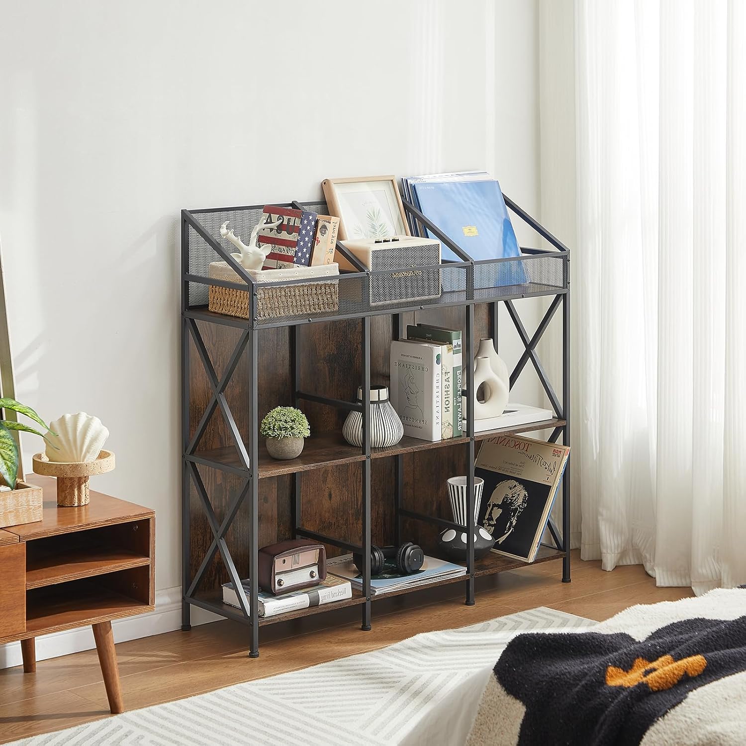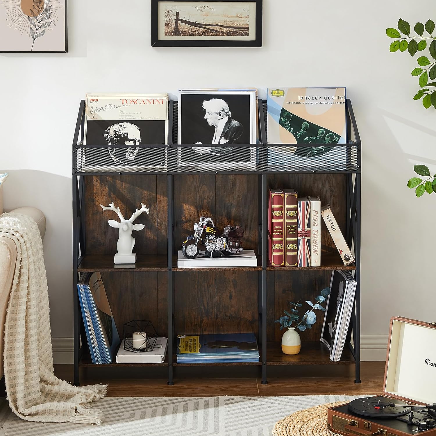 9 Grids Vinyl Record Storage Holder Rack, Wooden Record Display Table for Magazines Files Albums Books for Living Room Bedroom Patent Pending
