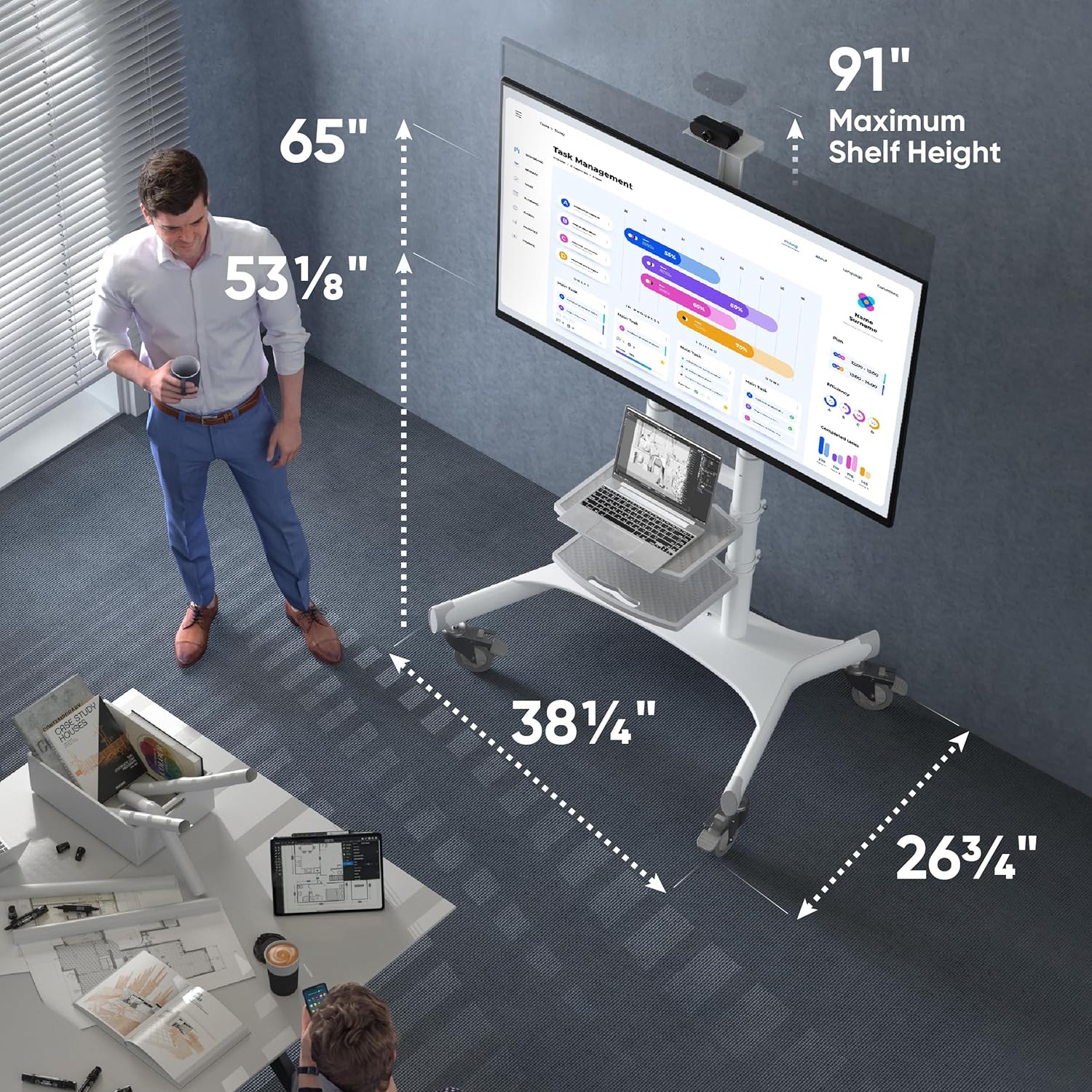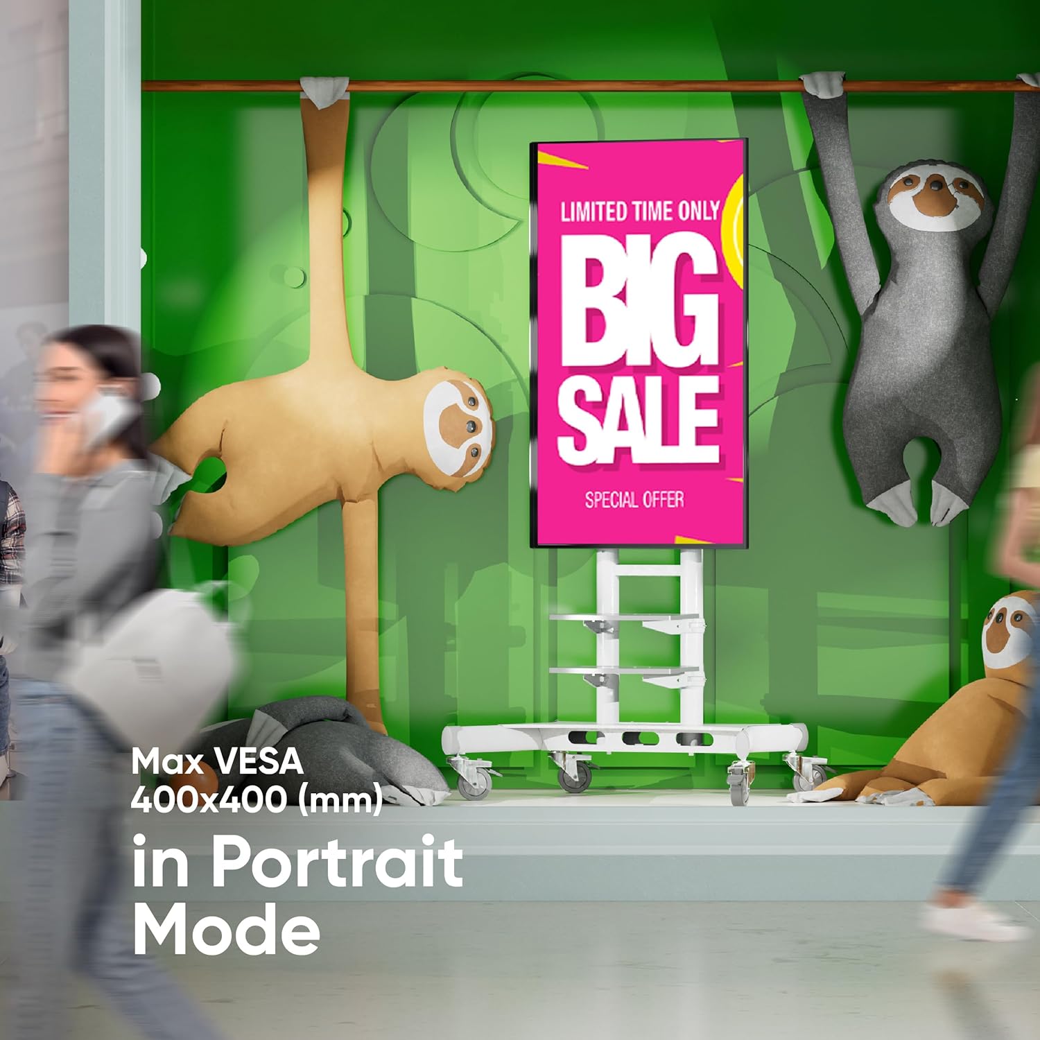 ONKRON Mobile TV Stand on Wheels for 50-86 Inch TVs, max Load up to 233 lbs, Height Adjustable TV Stand Portable, max VESA 800x500 - Movable, Rolling TV Cart with Wheels and Shelves White