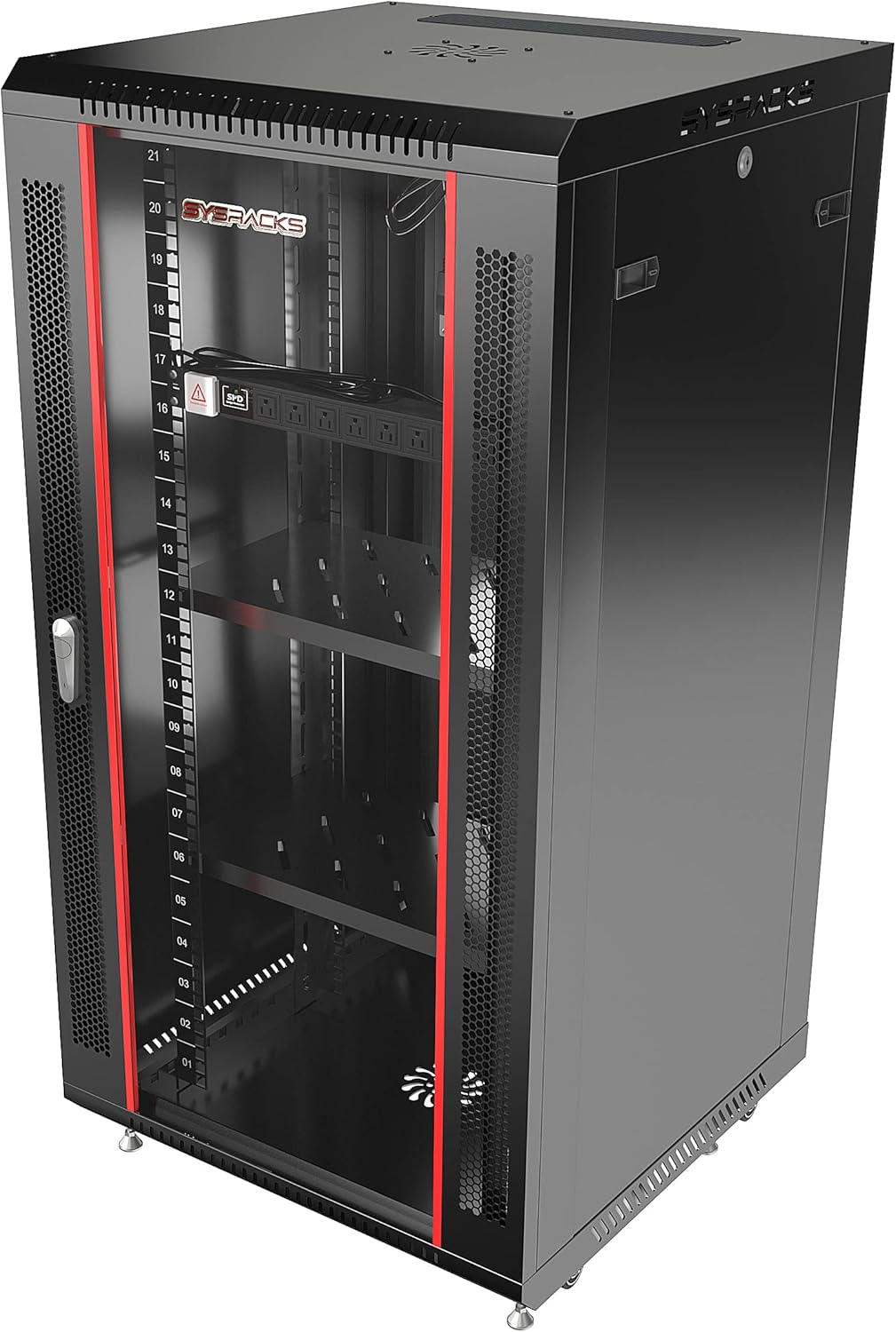 Server Rack – 22U - Wall Mount Rack - Locking Cabinet for Network - Electronics - Security - Audio - Video - AV Equipment - Data Rack - Legs/Power Strip/Shelf/Fan - 24-Inch Deep Sysracks