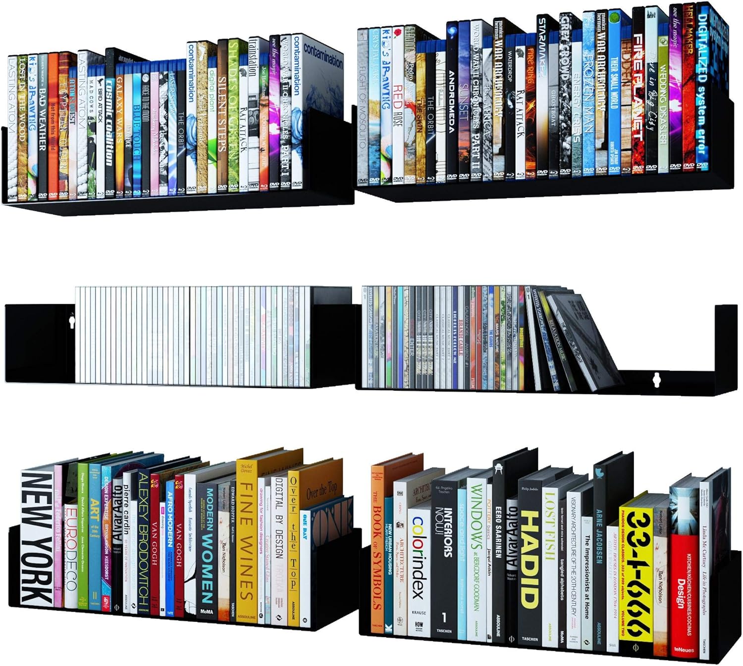 | Product Name | Wallniture Bali White Floating Bookshelves for Wall | Hanging Bookshelf Wall Mount Set of 4 | Wallniture Bali Floating Book Shelves for Wall | Wallniture Bali White U Shape Shelf Set of 9 | Wallniture Bali CD and DVD Storge Shelf Wall Mounted Set of 9 |