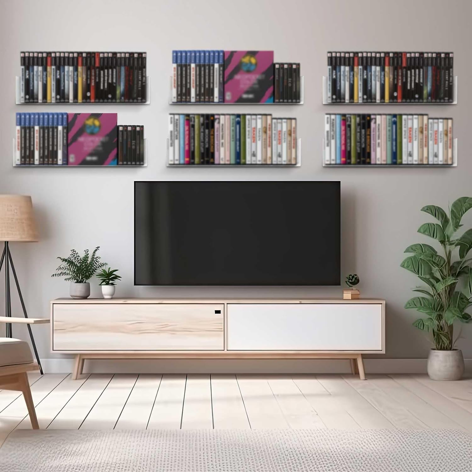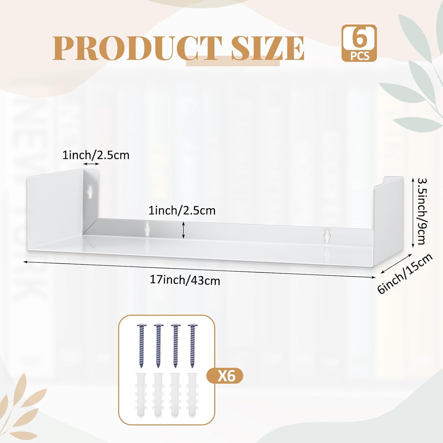 Yalikop 6 Pack Cd DVD Floating Shelves U Shape Shelves Storage Metal Cd DVD Storage Organizer White Wall Bookshelf for Movie Cases for Living Room, Bedroom, Bathroom, Kitchen