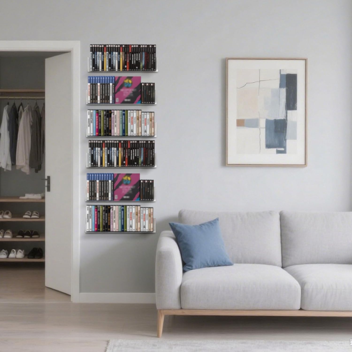 These sturdy metal floating shelves ensure your valuable media collections are safely stored. The robust metal construction has reliability, so rest assured that your DVDs and CDs are secure from accidental falls. The quality materials used in these Wall Mounted Shelves make them a safe choice for families, ensuring peace of mind while maintaining style.